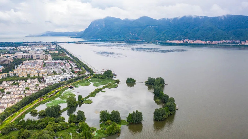 7月1日拍攝的滇池濕地一景(無人機照片)。新華社記者 胡超 攝
